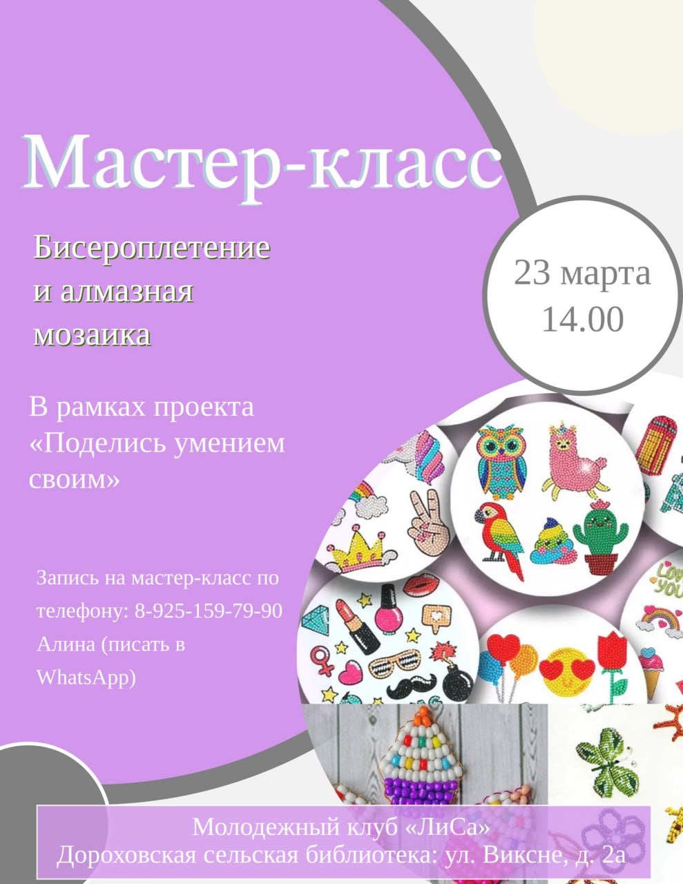 Дороховчане будут заниматься бисероплетением и алмазной мозаикой