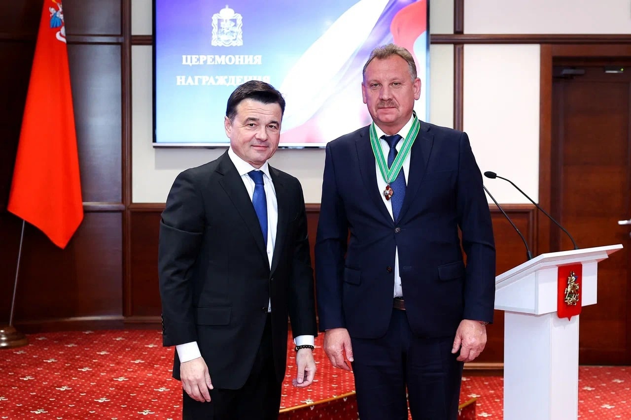 Губернатор Московской области Андрей Воробьёв вручил главе городского округа Зарайск Виктору Петрущенко орден преподобного Сергия Радонежского