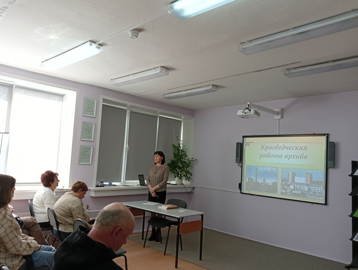 На семинаре выступила ведущий архивист Территориального отдела Наро-Фоминского г. о. Управления №6 ГБУ МО «ЦГАМО», краевед Хорошева Наталья Ростиславовна. Она рассказала о краеведческой работе архива по изучению истории родного края, о том, как популяризируются архивные документы. Выступление для наглядности сопровождалось видеопрезентацией.
