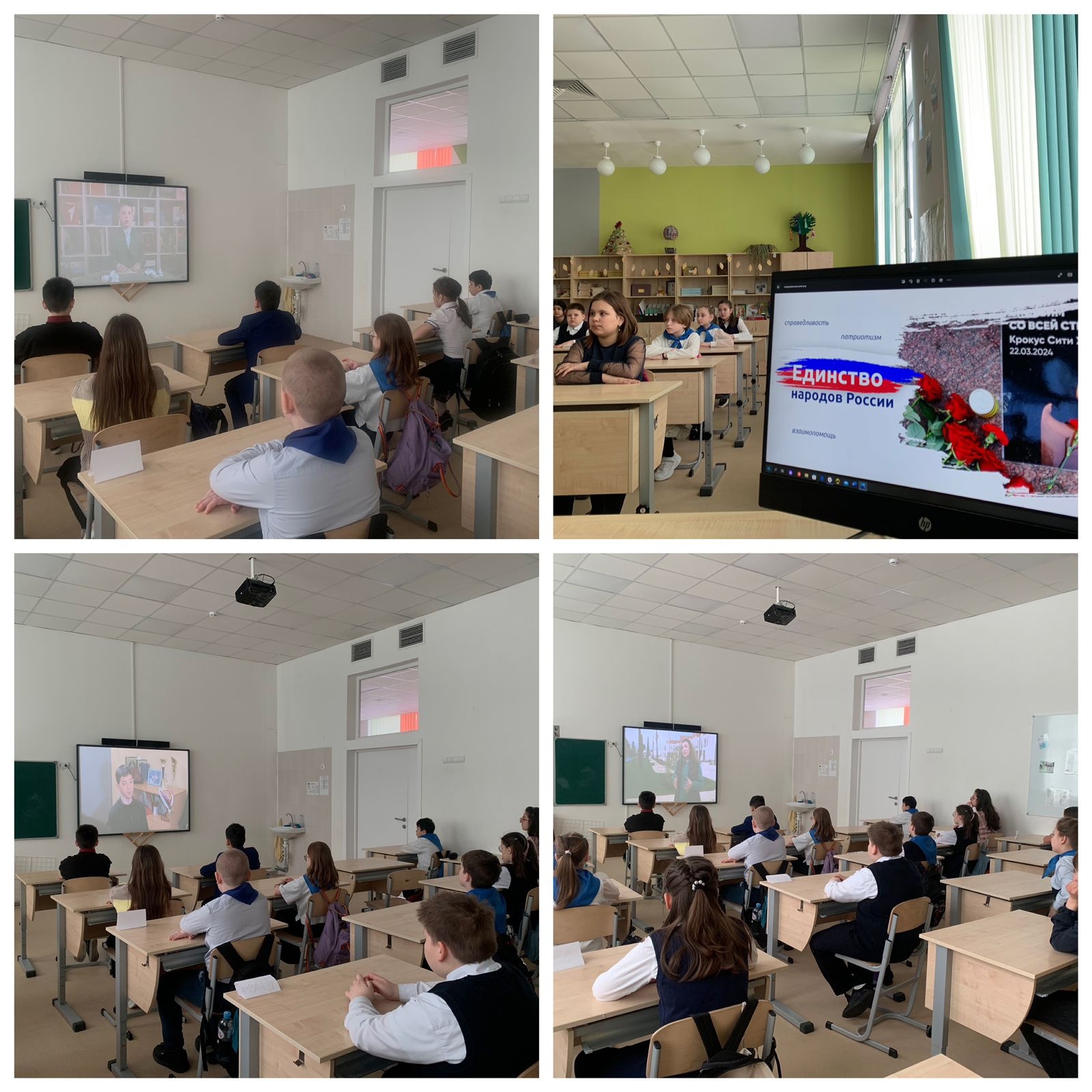 Занятие на тему "Единство народов России" началось с минуты молчания в память о погибших в теракте в концертном зале "Крокус Сити Холл" 22 марта.
